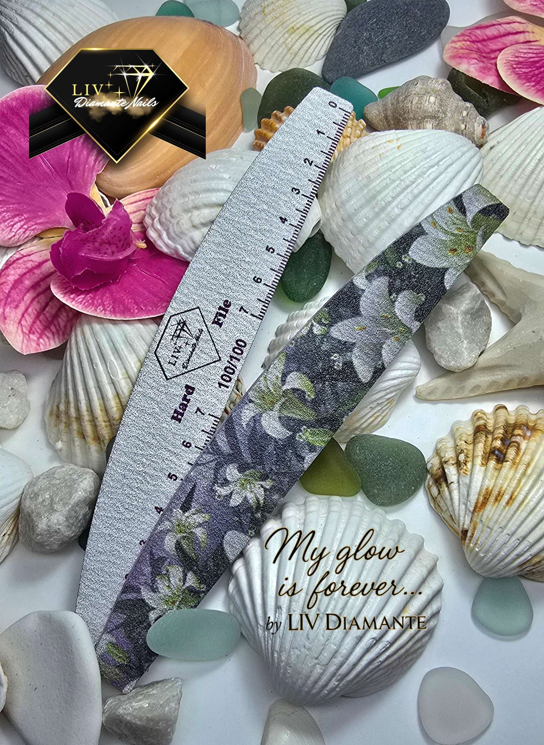Lima de uñas de media luna floral LIV Diamante Nails – 100/100 – Hard File