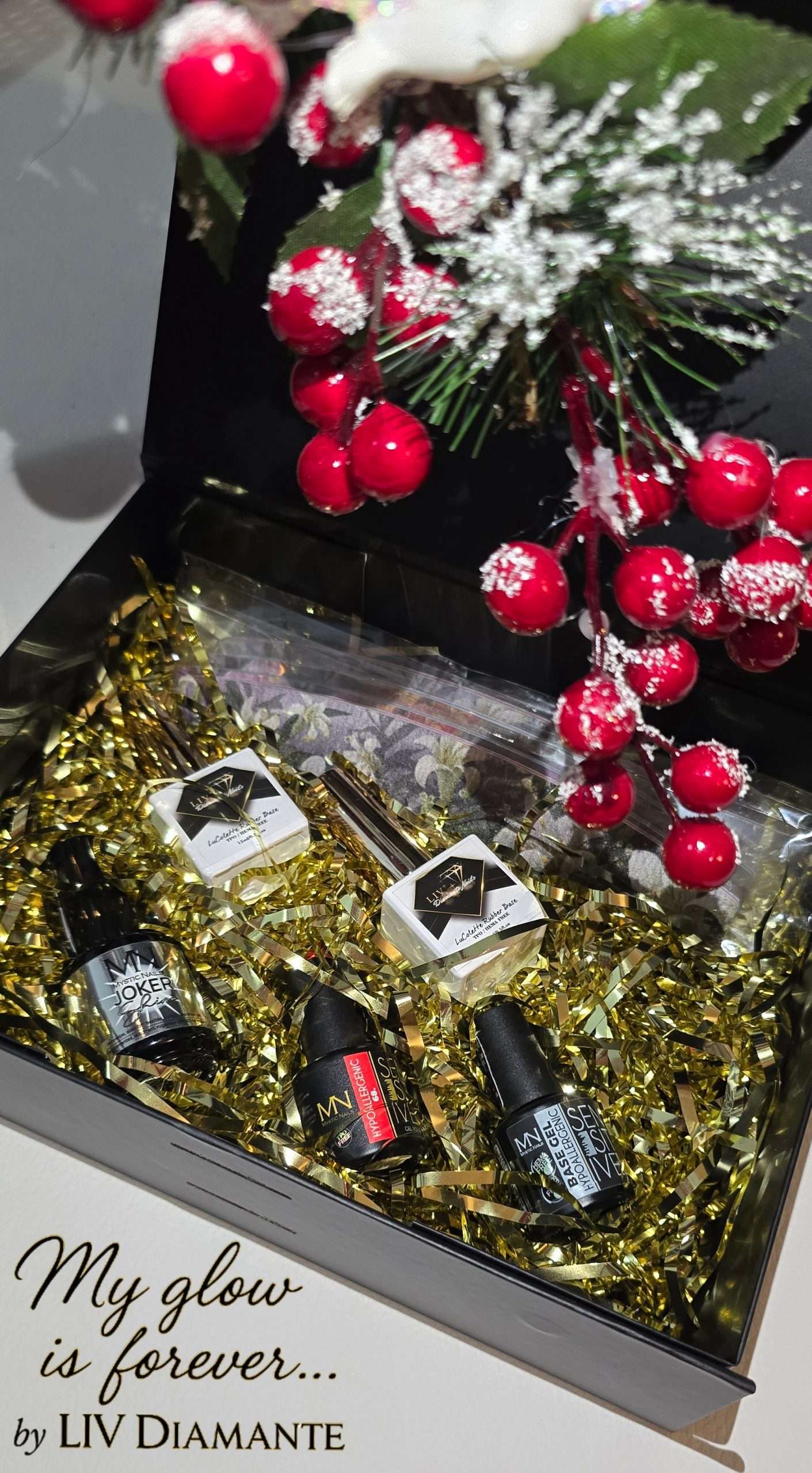 Permite empezar a trabajar de inmediato, incluye productos hipoalergénicos adecuados también para uñas sensibles, ofrece calidad profesional tanto para uso doméstico como en salón y se presenta en un elegante pack navideño de edición limitada.